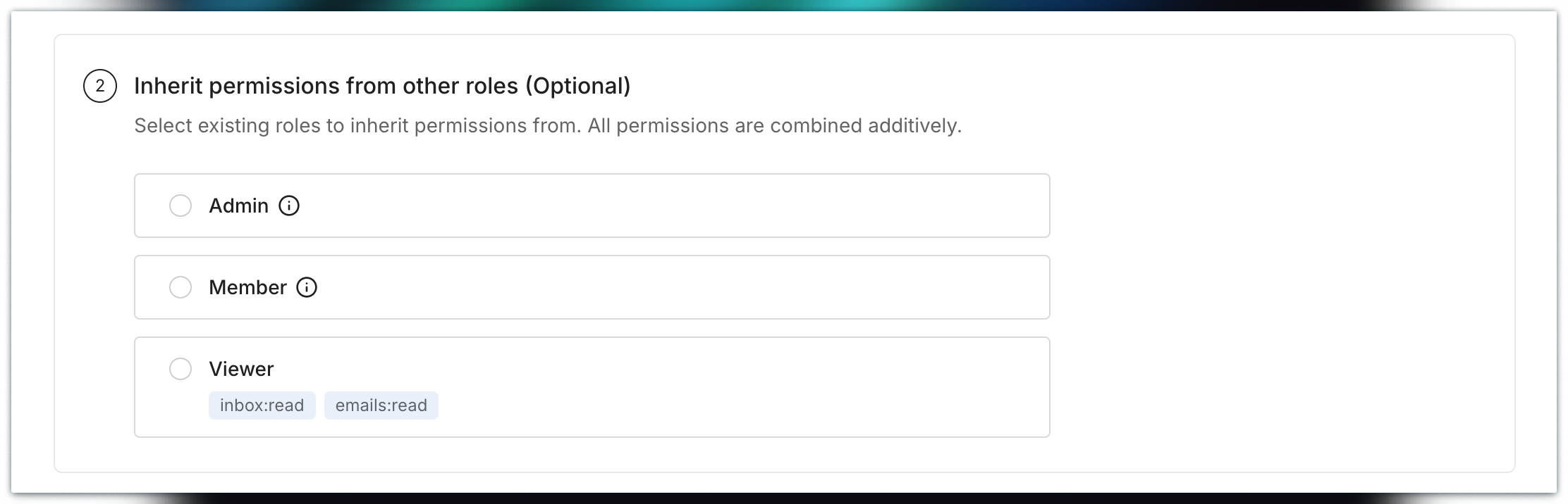 Section titled “Understand role inheritance ”Role inheritance lets you build permission hierarchies by having one role inherit all permissions from another role, then adding or removing specific permissions. This approach reduces duplication and makes permission management more maintainable.