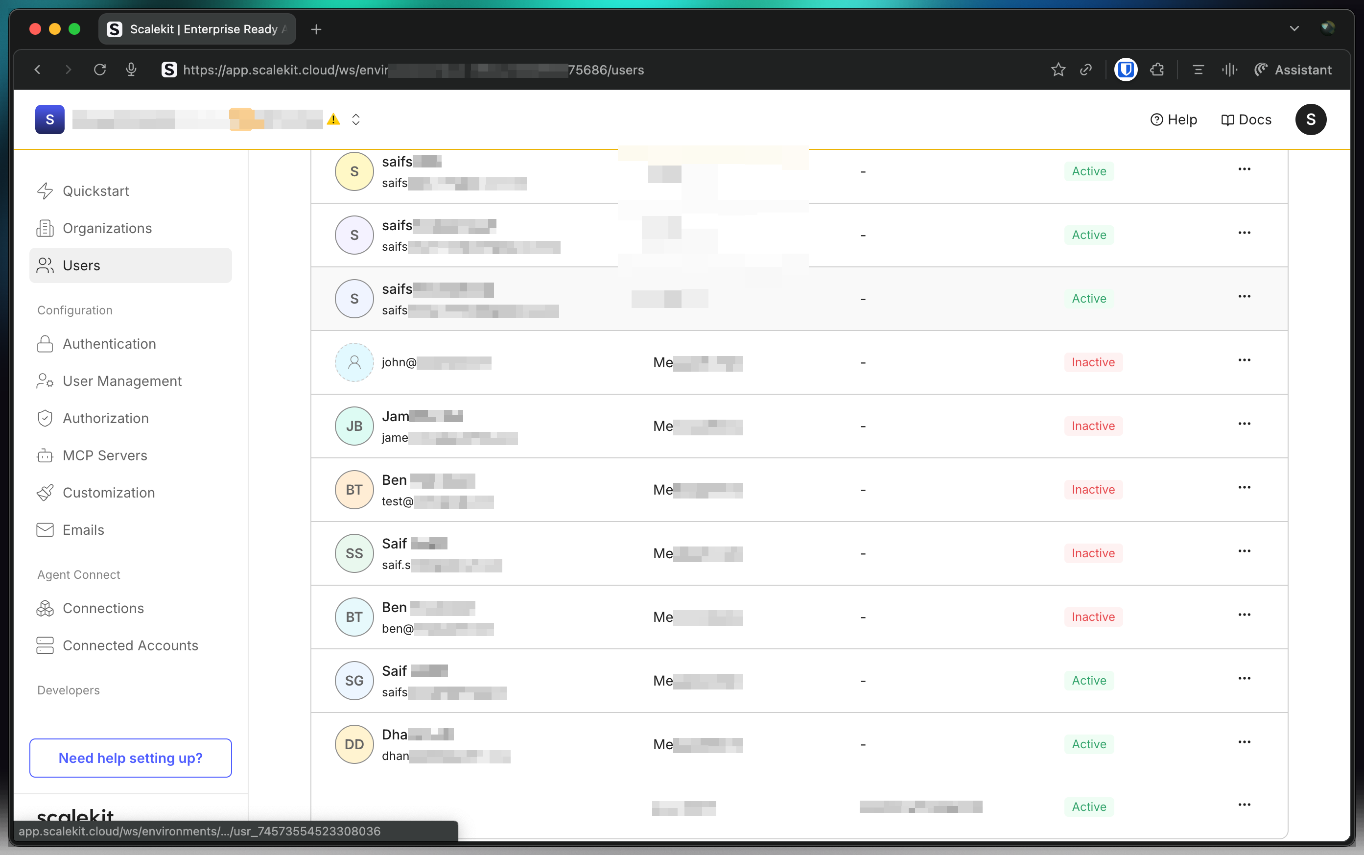 User management settings allow you to configure how user data is handled in the environment and what attributes are available for users in your application. These settings are accessible from the User Management section in the Scalekit dashboard.
