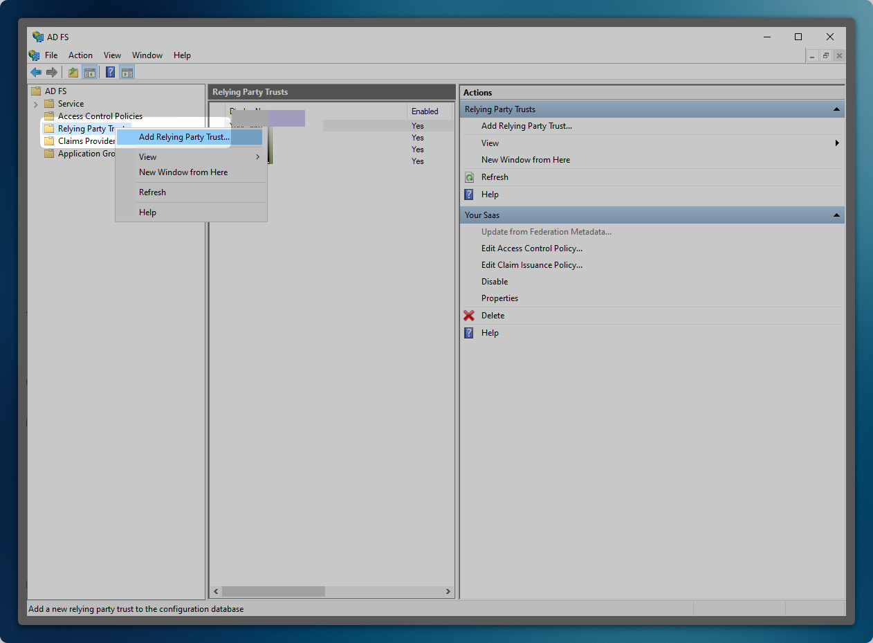 - Right-click ‘Relying Party Trusts’