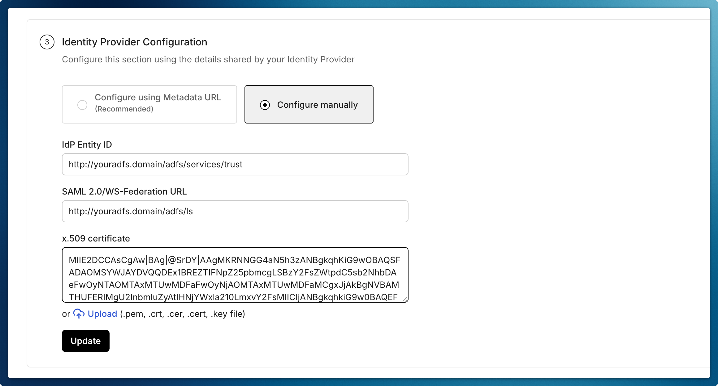 - Click “Update” to save the configuration