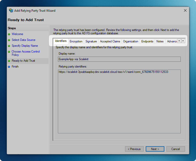- Microsoft AD FS Identifier: