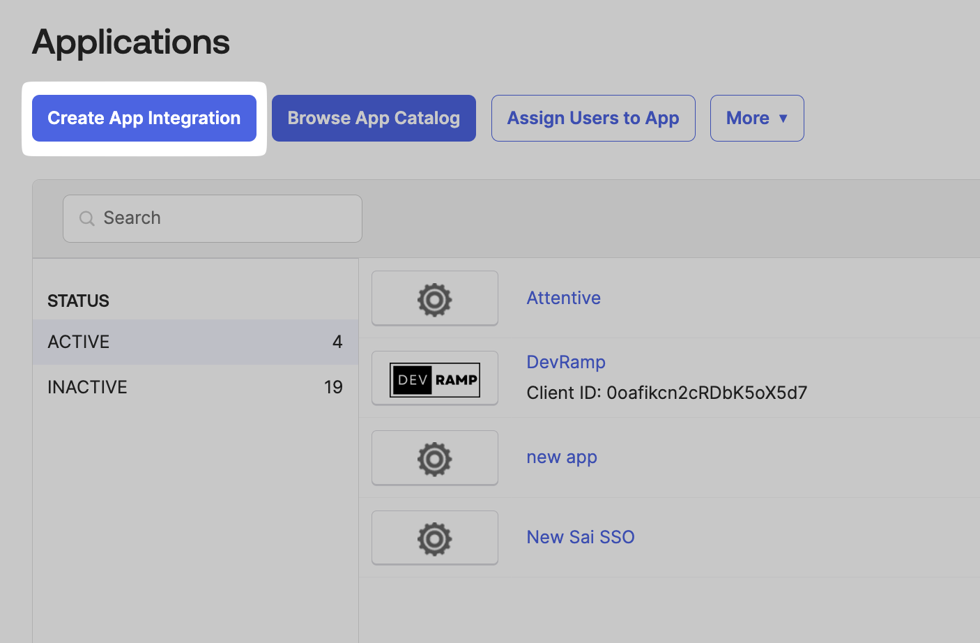 In the Applications tab, click on Create App Integration.